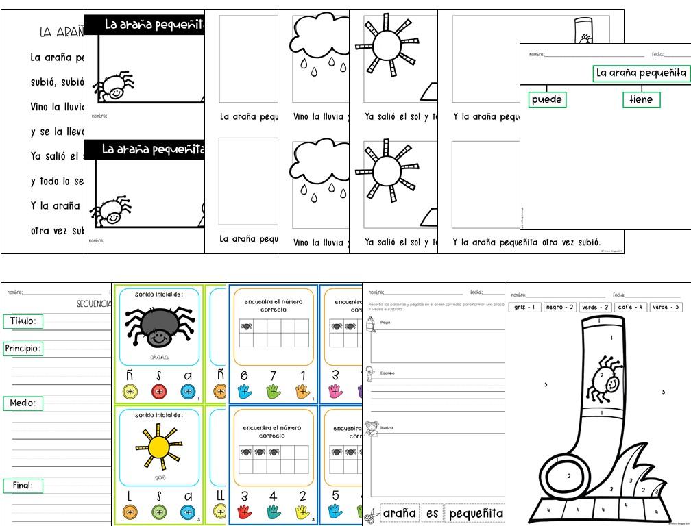Póster con canción/poema Mini libro Mapa árbol de araña Elementos de la historia Secuencia Poke cards (sonido inicial, sonido final e identificación de números 1-12) Oraciones revueltas Hoja para colorearThis resource was made with templates by FlapJack Factory.