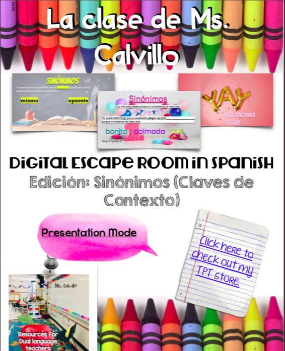 Digital Escape Room in Spanish Sinónimos (Claves de Contexto)!