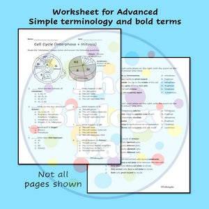 ESL students can reinforce their learning of Interphase and Mitosis using these worksheets. Several different versions of the worksheet are included for differentiation (beginner, intermediate, advanced). See preview for more information. This resource is translated for ESL Spanish students, but a version is included that can be edited to add a different language. The non-translated version of the worksheet can be used with SPED students. A key is included.