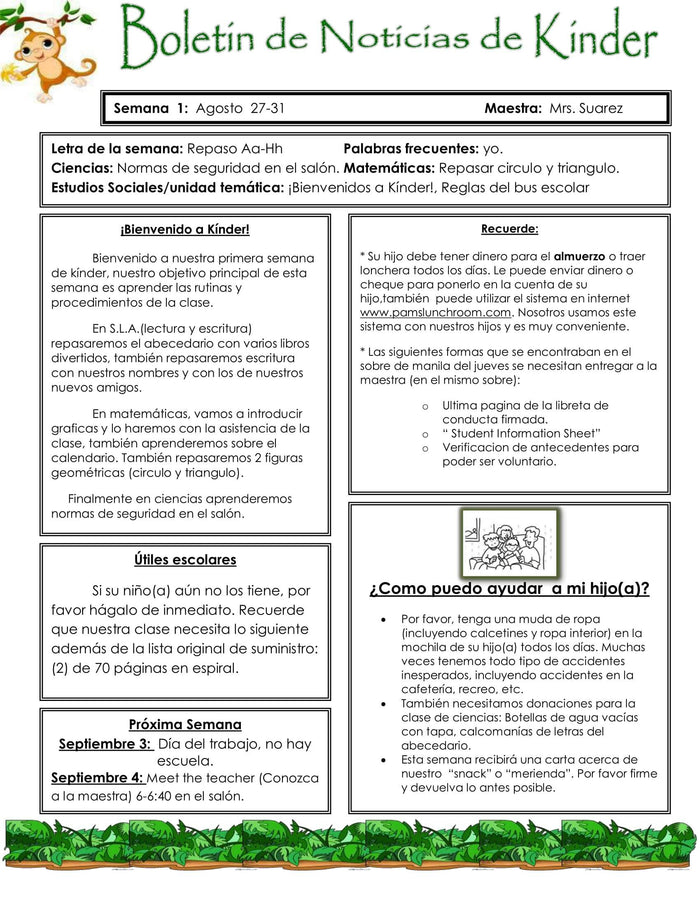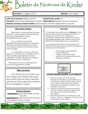 This is a great way to communicate with parents! This is the newsletter I created at the beginning of the year for my bilingual class, I would sent weekly newsletters alerting the parents of any new information, upcoming events, and on things they could do home with their students. It is completely editable (Microsoft Word document).