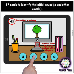 - Identify the initial sound of words (a and other vowels)