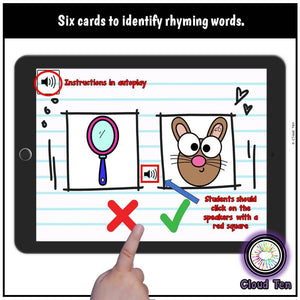 ☛ What are Boom Cards?A group of task cards is called a deck. Each deck contains a number of digital task cards which prompt students to pick an answer. If they pick the right one, they will hear a chime and the answer will be circled in green. If they pick a wrong answer. it will be circled in red and hear "uh -oh". Once they pick the right answer it will automatically move to the next slide.