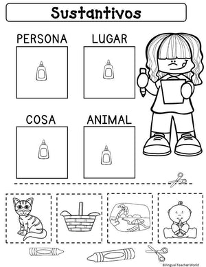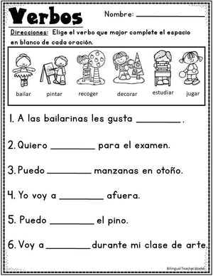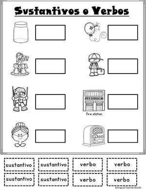 Sustantivos y verbos is perfect for Spanish Kinder, Spanish First Grade, Bilingual Kinder, Bilingual First Grade classrooms. This back to school Spanish Nouns and Verbs is packed with engaging, fun, and hands on activities that are going to help your students master verbs and nouns. These are perfect for your literacy centers, independent work, small group, interactive notebooks, send them for homework, early finishers, or for RTI and Early Intervention purposes. If your classroom is an ELL, ELD, ESL, or Dual Language classroom, these are great for your bilingual learning centers, bilingual literacy centers, bilingual centers.