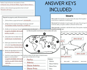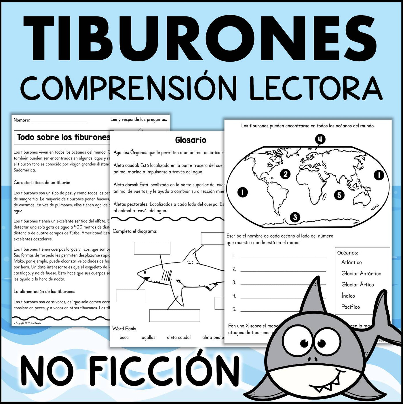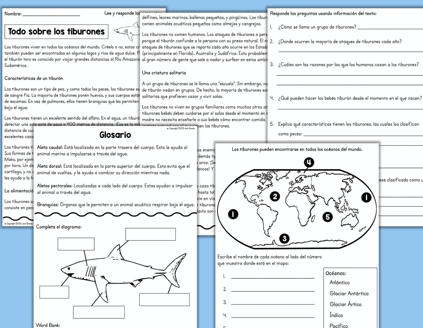 This is a set of reading comprehension activities about sharks for the Spanish immersion or bilingual classroom.